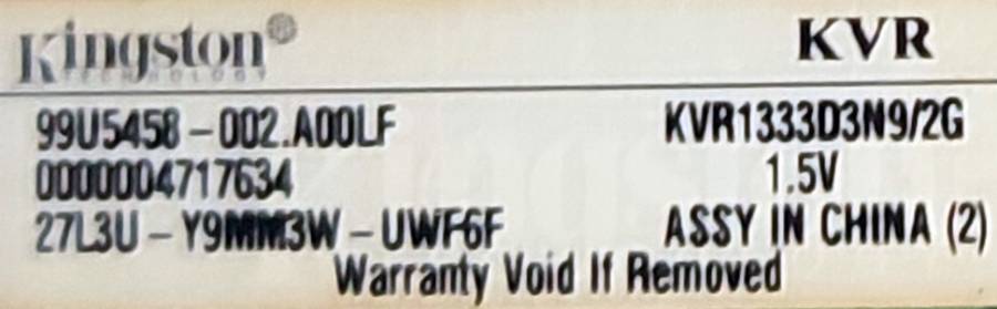 Продаю оперативную память Kingston Value RAM KVR1333D3N9/2G (DIMM 240 pin, DDR3, 1333 МHz, CL9, 1.5 V, 2 GB) 2 шт. по 300 ₽