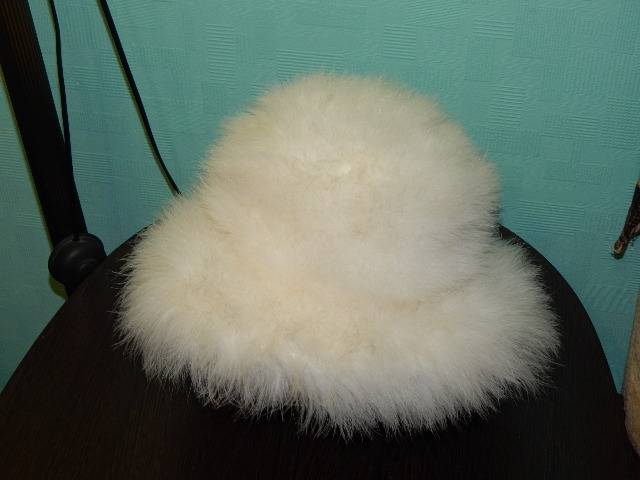 В отличном состоянии, почти не надевалась.Смотрится на голове шикарно, широкополая.